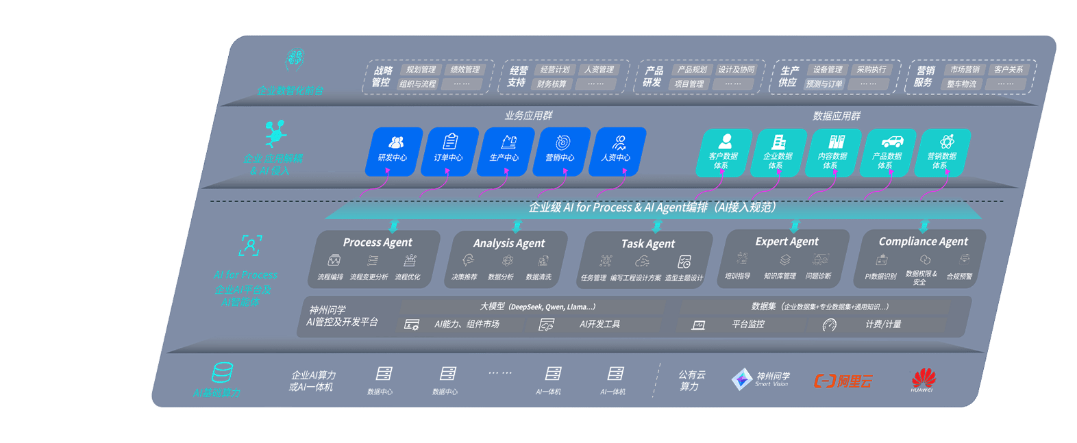 尊龙z6问学智车解决方案是一套基于AI技术的汽车行业智能化系统,,,,覆盖从底层算力到顶层AI应用的全栈方案。。方案由算力层、、模型层和应用层组成:算力层,,方案支持多种一体机配置,,,,具备云端灵活部署、、、多云适配以及动态优化计算资源的能力;模型层,,尊龙z6问学平台版提供了企业级AI应用一站式构建与管理平台,,支持基于后训练强化技术的汽车企业专属模型的训练、、、评测和运营;应用层,,,,尊龙z6问学DeepSeek版提供包括超级员工、、、智能招采、、智能营销、、智能客服、、、AI for BI等一系列解决方案,,可助力汽车行业实现数字化转型,,,让管理更智能、、响应更敏捷。。